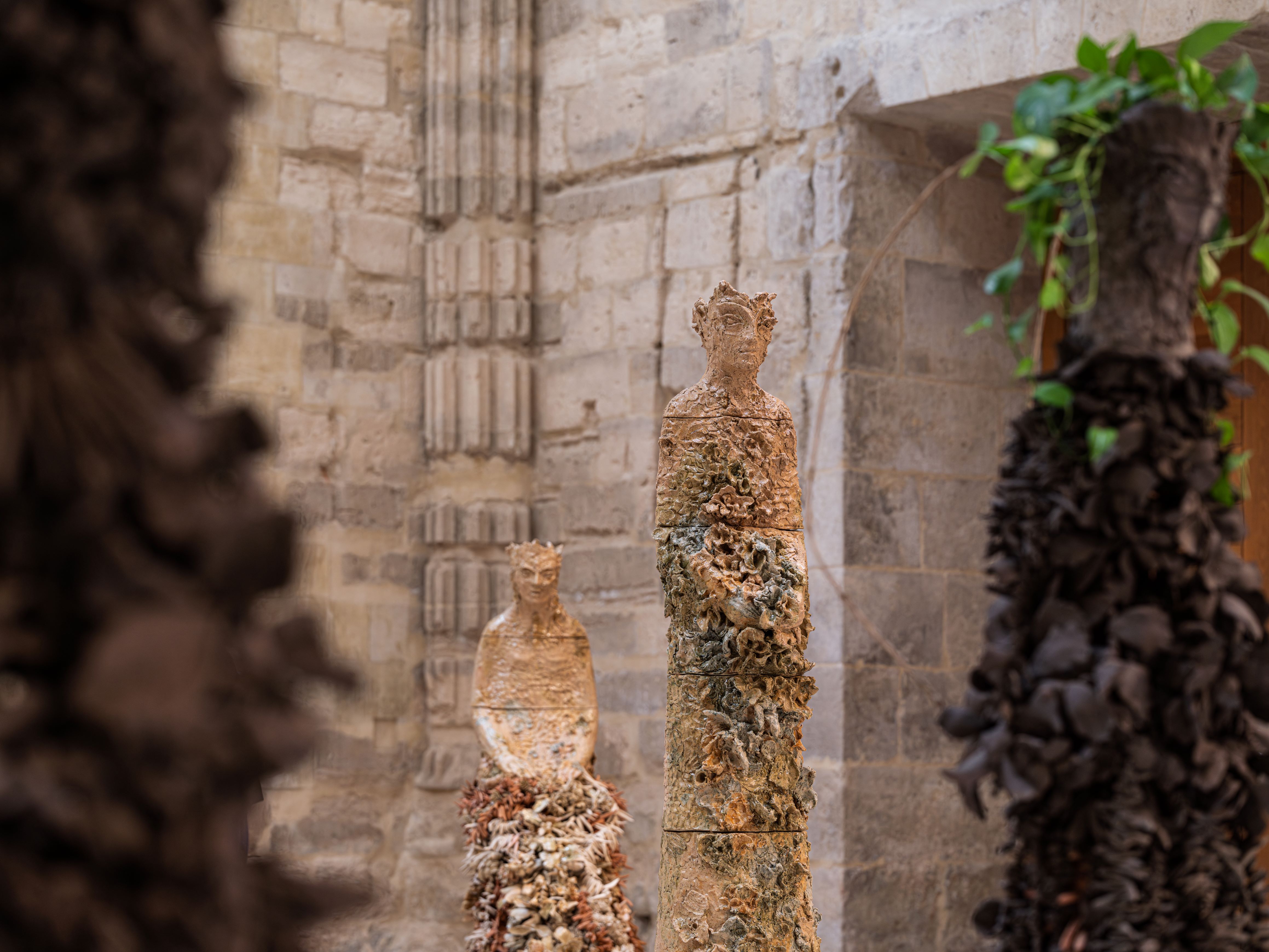 La propuesta en la Capilla, radicalmente opuesta a la de su predecesora, que planteaba una arquitectura ficticia que podía –paradójicamente, pues todo se alzaba sobre una gran paradoja- pasar desapercibida, la serie de Colonne (columnas) de Camoni son piezas de raíz arquitectónica, como se desprende del nombre bajo el que se reúnen, pero son poderosamente antropomorfas. Su presencia es incontestable, y sin embargo, a pesar de tan hiperbólicas cualidades, lo que se percibe en ellas es una profunda ambivalencia, pues cada una de las figuras, verticales y esbeltas, apelan en igual medida a lo humano, lo animal, lo arquitectónico, lo natural… Nociones oníricas circulan en torno a ellas como un viento tibio y ligero que acaricia hojas y ramas suavemente, y entre ellas se deslizan ecos de relatos míticos. Pero sobre todo, lo que transmiten estas piezas es un compromiso insoslayable con la cualidad plástica de todo ejercicio artístico.