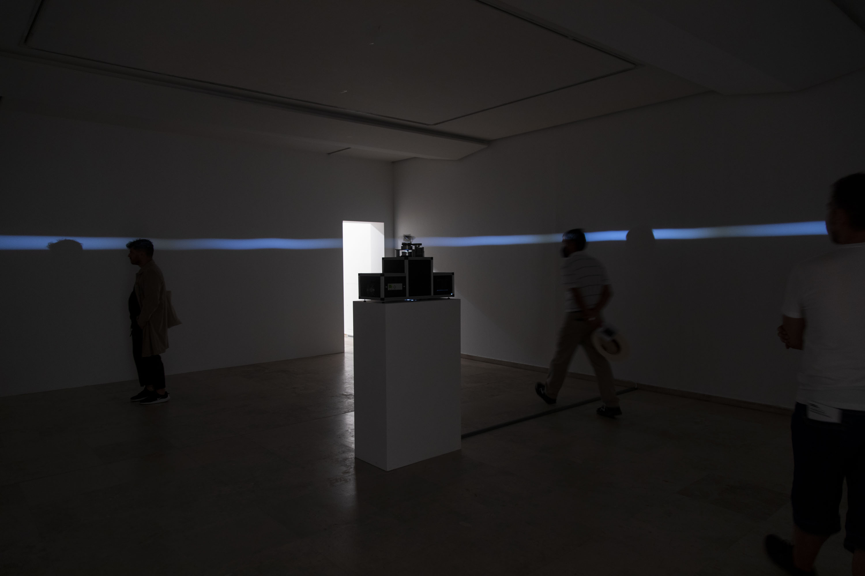 In 2000, Dora García produced an installation for the Pontevedra Biennial, entitled The Horizon Machine, which, after its exhibition at the event in Galicia, became part of the Contemporary Art Collection Association, based at the Patio Herreriano Museum. At that time, García was just setting out on an artistic career that is now considered one of the most important on the national scene. Over two decades later, as part of the celebrations for the twentieth anniversary of the museum, which is on the opening day of this exhibition, The Horizon Machine is now revealed in its most precise dimension, in a space designed specifically for this occasion and accompanied by a group of works of art produced at the same time; three photographs that share a similar feeling to that of the installation, but from different formal positions.