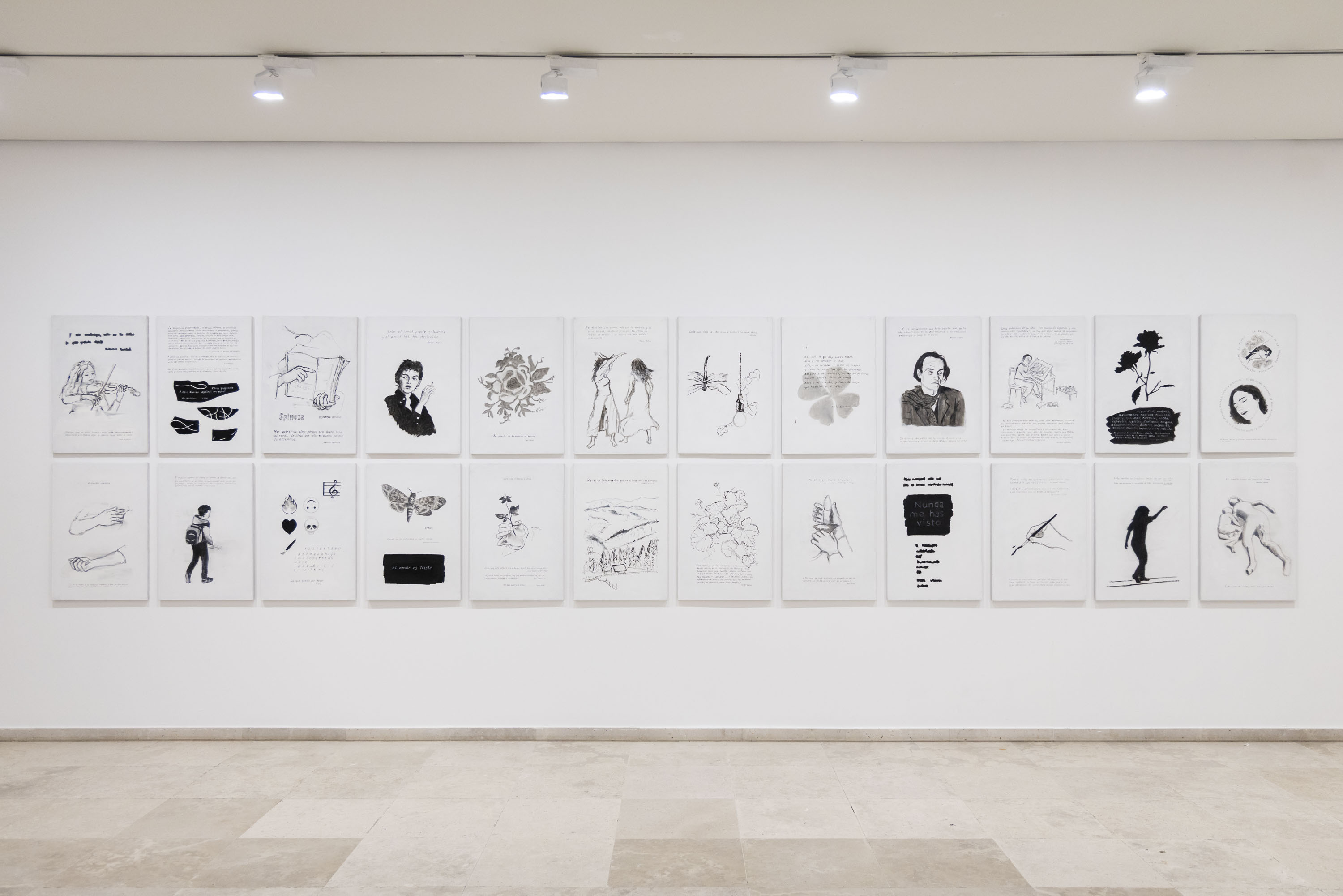 Se reúnen por primera vez en una misma exposición únicamente obras seriadas u obras compuestas por más de una imagen. La importancia de este hecho inédito estriba en ofrecer una metodología de trabajo que pareciera necesitar de los agenciamientos entre diversas áreas de estudio y entre ámbitos de acción interrelacionados para completarse, y el artista las reunió bajo un título triple: Estudios, diarios y colecciones.